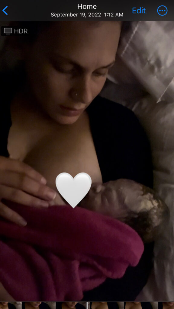 As soon as I heard my midwives automated recording replace my relaxing music, I realized he didn’t understand that I meant baby was literally about to be born. I quickly told him “no babe! You need to catch the baby” so he turned around from my nightstand and saw baby’s head crowning. He quickly rushed to the side of my bed and stood right behind me. Thankfully he knew exactly what to do and felt confident doing it. After a couple more strong waves, our sweet baby was born at 1:11am into my husband’s arms. Proudly he announced “it’s a boy!”.